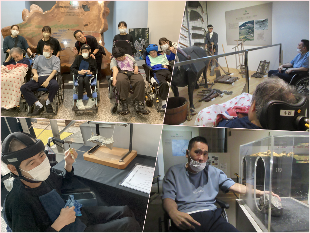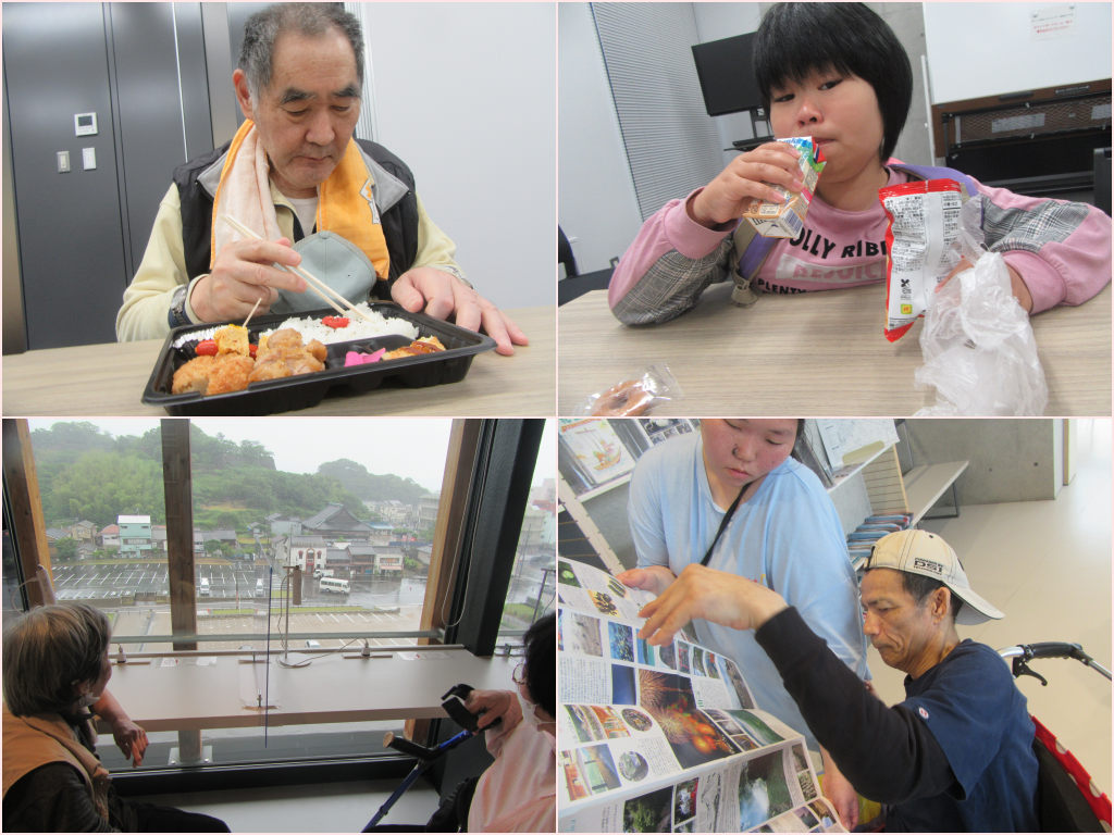 6月に入り各チームでは今年も春の遠足に出掛けて来ました。Aチームは丹鶴ホールを訪問し、展示物を観賞したりおやつを楽しんでいます。Bチームは旧グリーンピア南紀へ出かけピクニック気分を味わい、Cチームは串本にあるタイヨウのカフェにてキーホルダーの制作体験に参加してきました。みなさんとてもいい笑顔で遠足を楽しまれている様子でした。