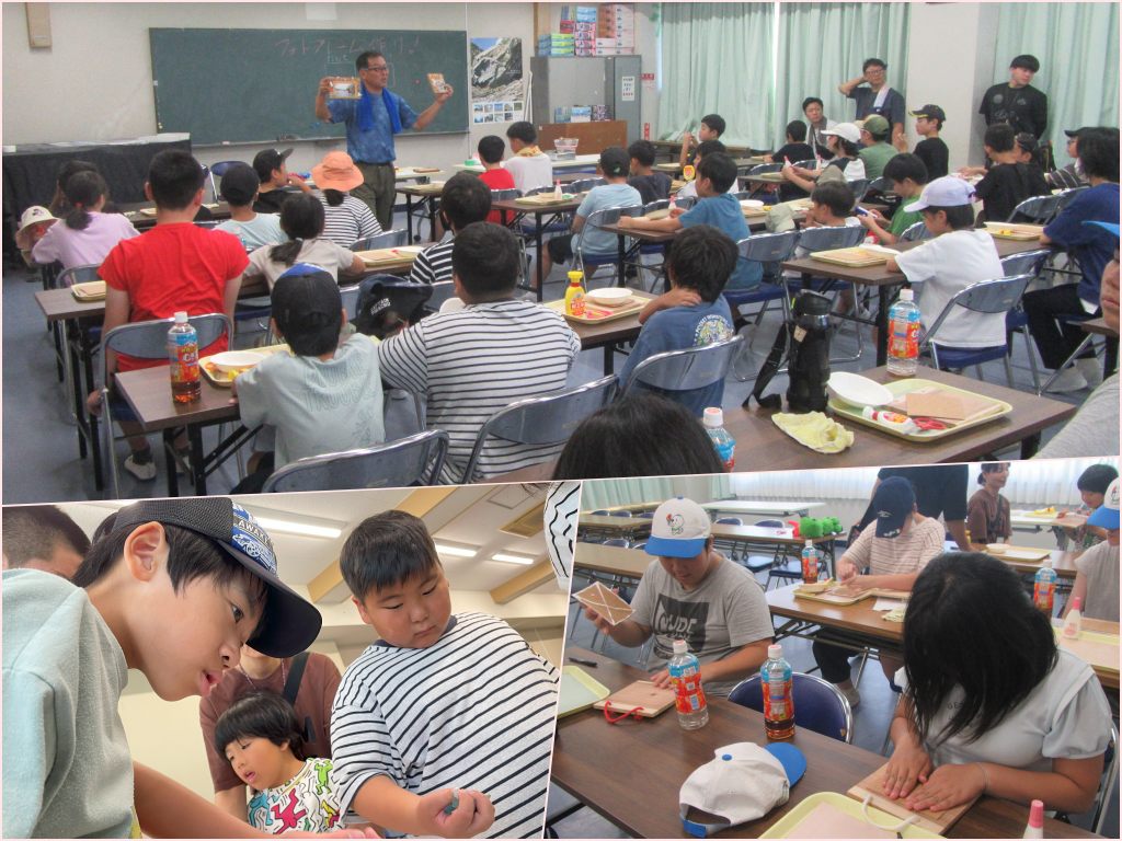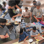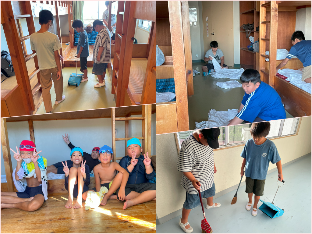 『潮岬青少年の家』にて一泊二日、プールやキャンプファイヤー、フォトフレーム作りなどを体験しました。夕食にはカレーを皆で食べ、二段ベッドに自分たちでシーツをセットするなど、キャンプならではの体験をしました。