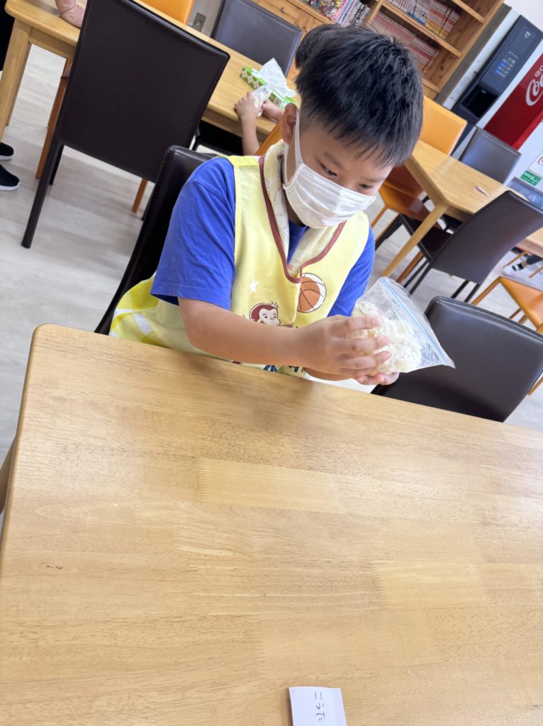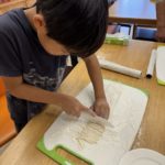10月13日 クッキングでうどん作り。粉まみれになりながらも、最後まで頑張って作りました。