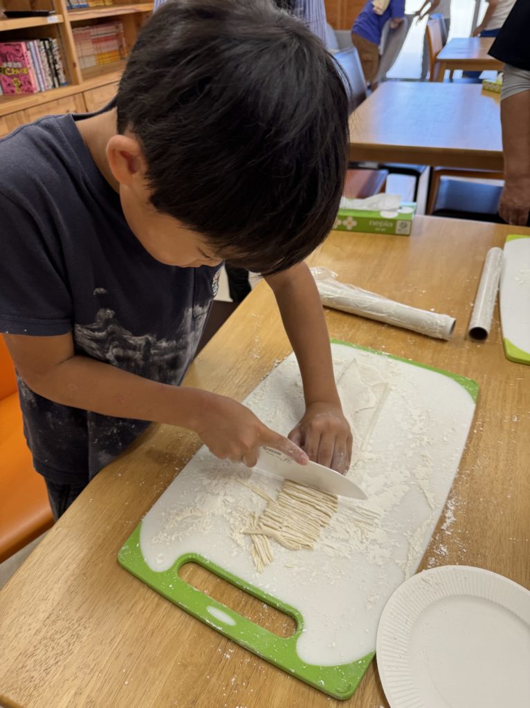 でき上がった麺は、極細麺からきし麺までいろんな太さになりましたが、みんな美味しそうにパクパク食べていました!